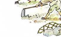 | 南部川村(現代のみなべ町)の梅栽培の先駆者である内中為七の長男、源蔵(げんぞう)は紺屋(こんや)を営む青年実業家でした。時代を読み、梅栽培がよいと判断した源蔵は明治34年、紺屋を廃業し私財を投じて熊岡の扇山を買い取り、4ヘクタール(400アール)の土地を開墾しました。その開墾地に先の内本徳松が発見した優良種を植え付けました。また、加工場を設けて梅の商品化にも着手。若き事業家の強い意志が、村の発展のきっかけとなりました。 |