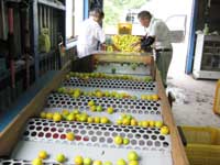 6月下旬から続いている梅干用南高梅の収穫作業は7月上中旬には収穫のピークを向えます。収穫した南高梅は写真のように綺麗に洗浄した後、選果選別してからそれぞれのサイズの業務用タンクに漬け込みます。 |